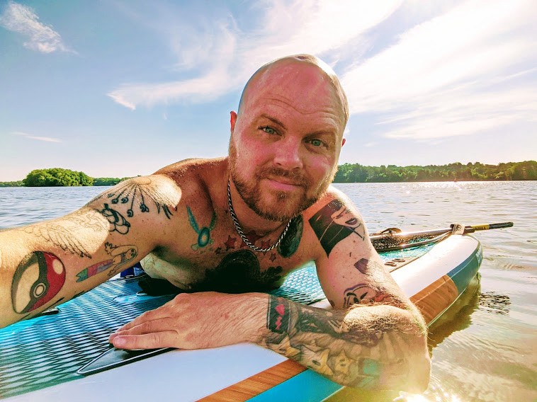 When I first got on a paddle board a couple years ago (I believe it was the summer of 2018), I was at a boat tie up party by my cousin’s lake. I would hop on the board while in shallow water and would fall off within seconds. I kept treating it like a surf board because of my skateboarding background, and was told to steady my feet, and not act like I’m skating. Instantly my center of gravity held and I was stable. Just by switching the way I was standing on the board I could paddle myself all over the lake.