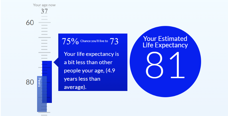 In trying a few calculators, my results ranged from 71 to 84 years. Blueprint asked specific questions, so I trusted their results more than others.
