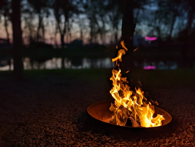 My daughter smiles as she watches her children learn how to fillet all of our fresh-caught fish from the lake. The boat is tied up. A fire begins to crackle as the sun sets.